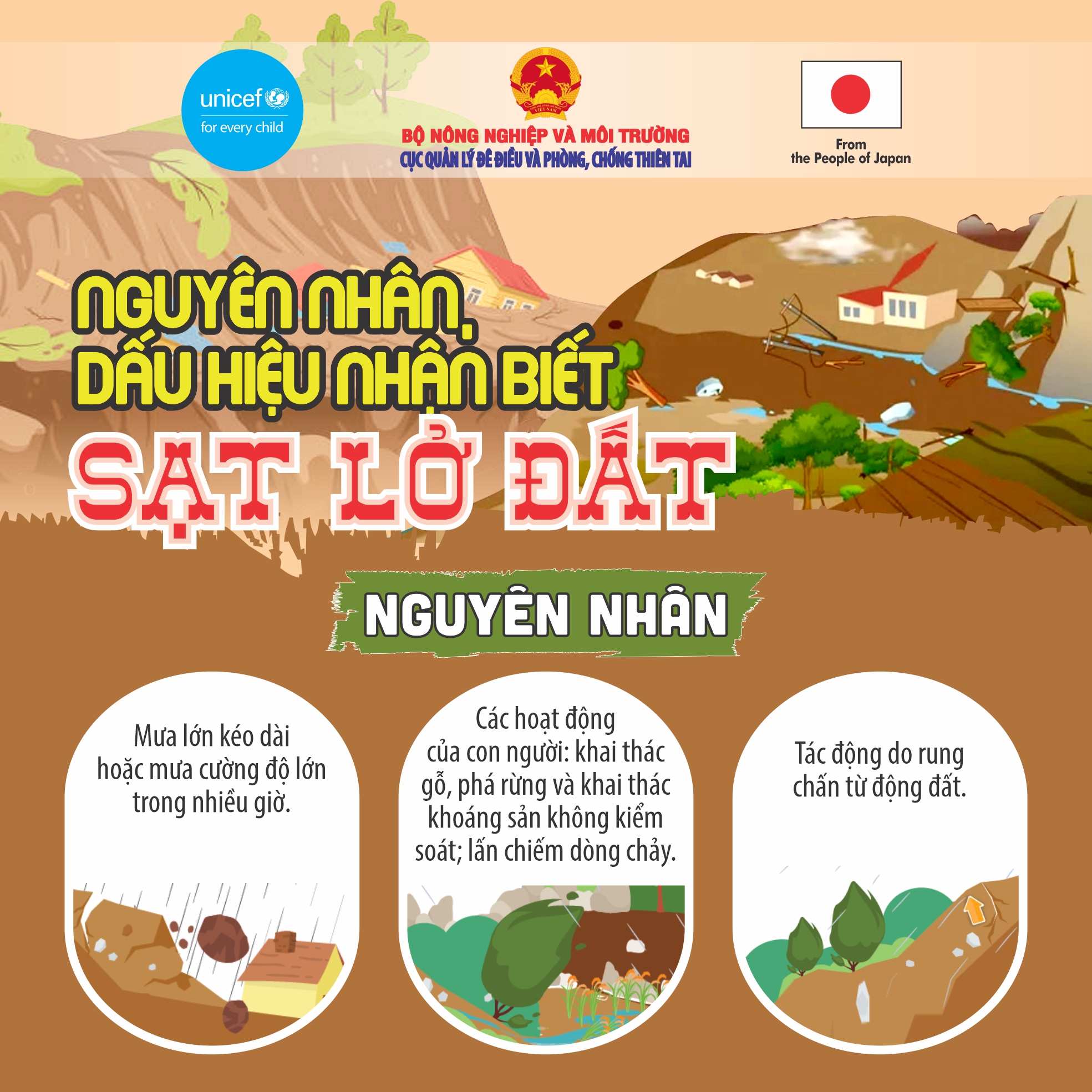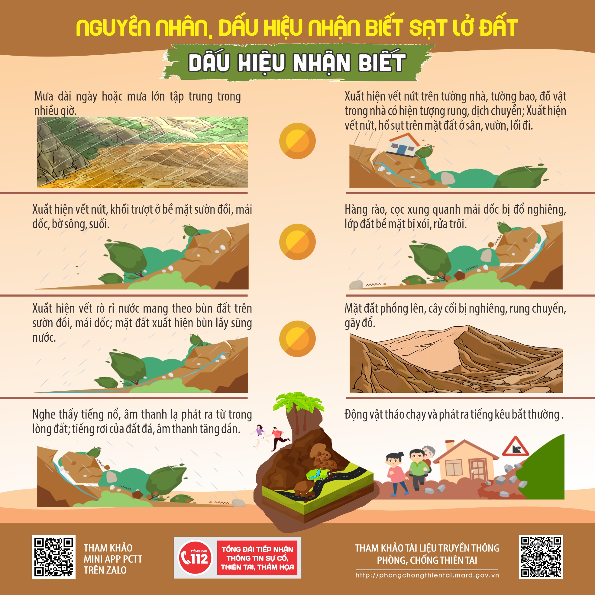 Infographic dưới đây cung cấp một số thông tin về nguyên nhân và dấu hiệu nhận biết sạt lở đất.
