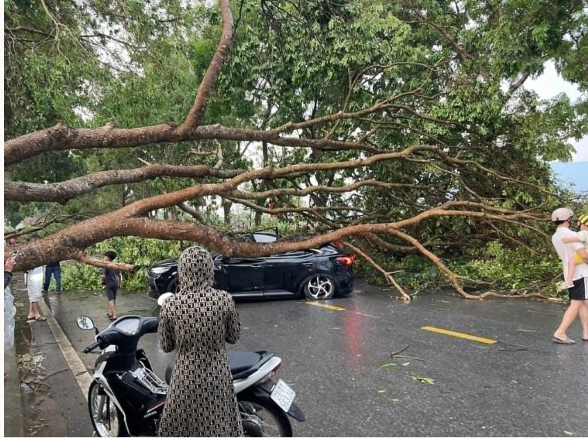 Tại hiện trường, cây đổ vắt ngang đường Tô Hiệu, kéo sập một phần dây cáp, gốc bật bung vỉa hè. Lực lượng chức năng đã cắt dọn cây xanh, giải phóng lòng đường, đảm bảo an toàn giao thông. Đường Tô Hiệu dài 1,2 km, rộng 12-15 m, có hai làn xe chạy. Hai bên trồng nhiều cây xanh.