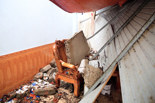 Một nhà dân huyện Tương Dương bị hư hỏng nặng do dông lốc, mưa đá