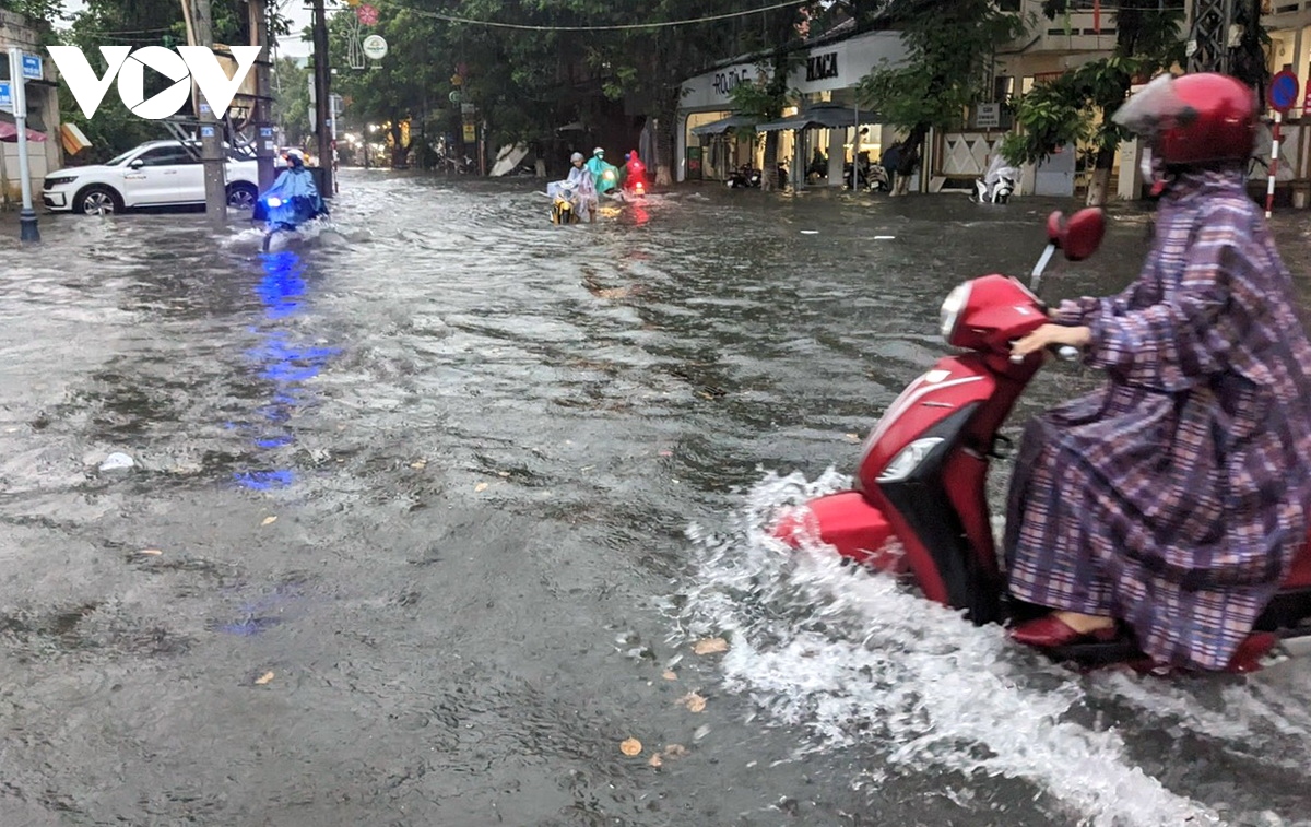 Trận mưa lớn hơn 100mm kéo dài vào chiều tối 29/8 vừa qua khiến nhiều đường phố ở trung tâm thành phố Quảng Ngãi ngập nặng, giao thông tê liệt. Có đoạn nước dâng hơn nửa mét, tràn vào nhà dân.